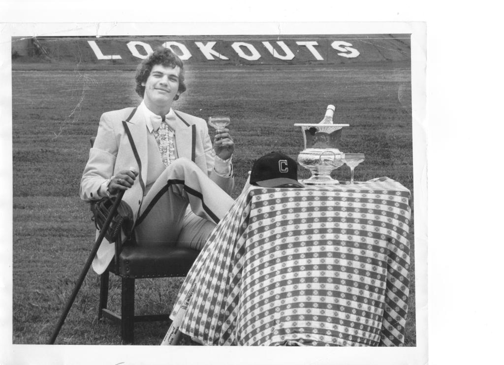 To commemorate his batting championship, Charboneau agreed to a photo shoot for the afternoon newspaper. He was fitted for a powder-blue tuxedo with a frilly shirt – we did say it was 1979, after all – and posed in outfield behind a table with a red-and-white checkered cloth. A champagne bucket rested on the table and Charboneau held a glass in the air.